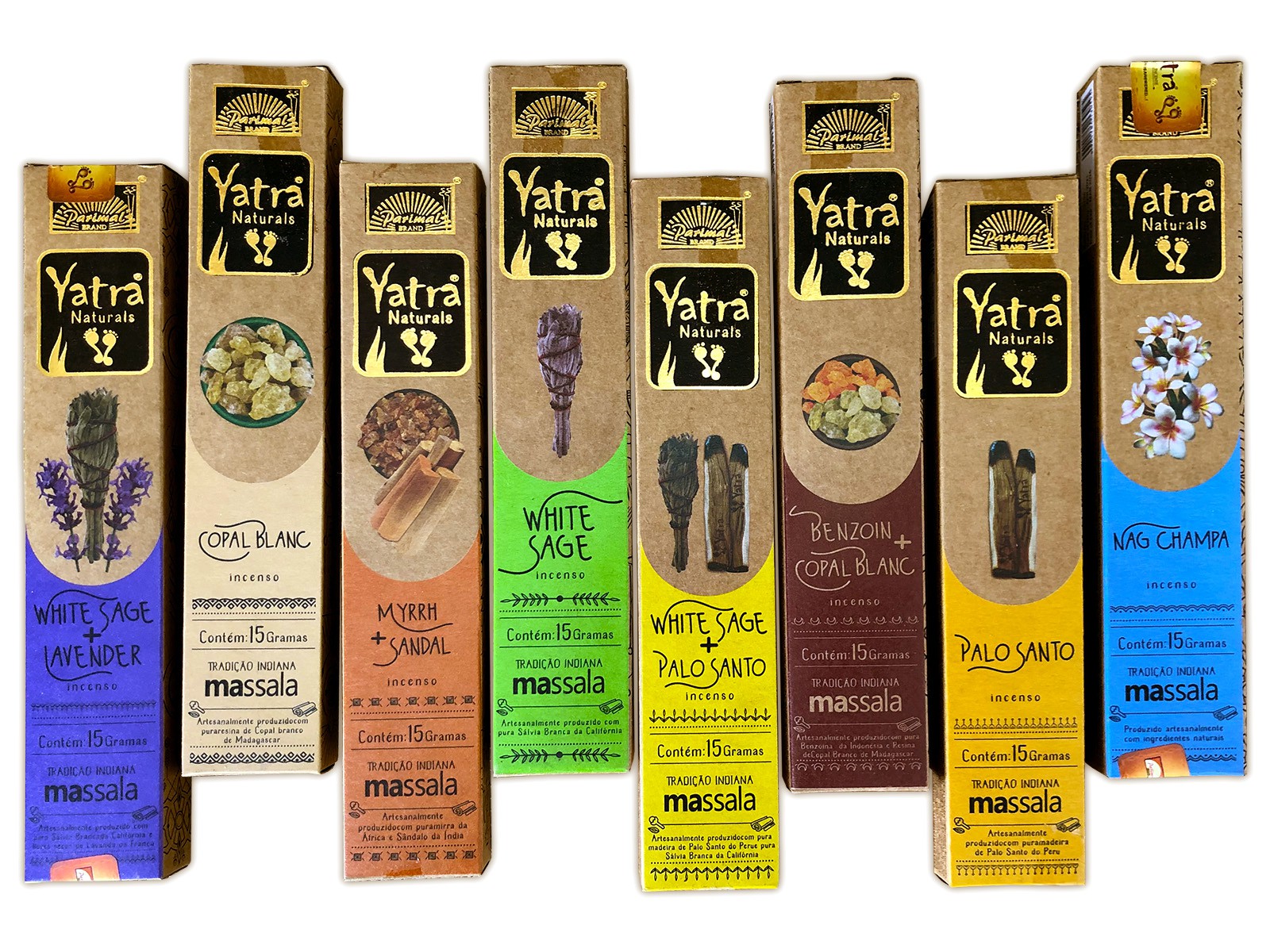 KIT COM 8 AROMAS DOS INCENSOS MASSALA YATRA NATURALS